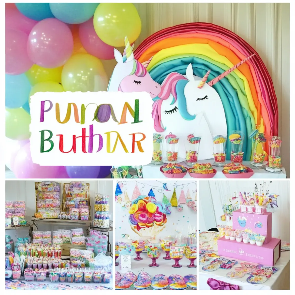 • Add Sweetness: Incorporate mini rainbow cupcakes or unicorn-themed cookies for an extra indulgent treat on the dessert table.